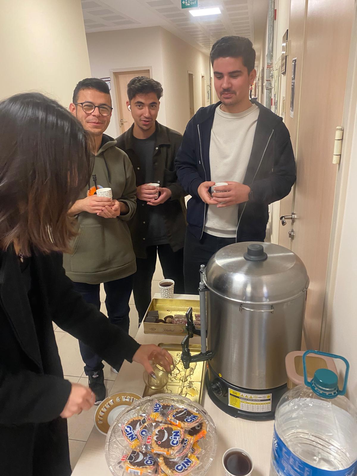 Bölüm Başkanlığımız, ders aralarında öğrencilerimize küçük bir mola ve motivasyon sağlamak amacıyla sıcak çay ikramında bulundu. Teneffüs sırasında gerçekleştirilen bu nazik jest, öğrencilerimizin kısa bir süre de olsa keyif almalarına katkı sağladı.