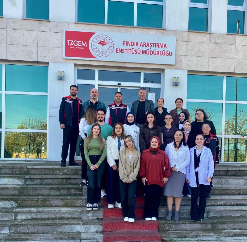 Bölümümüz 3. Sınıf öğrencilerinin katılımıyla Biyokimya I dersi kapsamında ilimizde faaliyet gösteren Tarım ve Orman Bakanlığı Fındık Araştırma Enstitüsü Müdürlüğüne teknik gezi düzenlenmiştir. Teknik gezide öğrencilerimize Enstitü bünyesinde hizmet veren laboratuvarlar gezdirilerek, alanında uzman personeller tarafından mevcut cihazlar ve yürütülen çalışmalar hakkında ayrıntılı bilgiler verilmiştir. Öğrencilerimiz ayrıca Fındık Araştırma Enstitüsü Müdürlüğünün arazisini de gezme fırsatı bularak, burada yürütülen çalışmalar hakkında da bilgi almışlardır. Teknik gezide Biyokimya I dersinin sorumlusu Bölüm Başkanımız Prof. Dr. Emine YALÇIN ile öğretim üyeleri Prof. Dr. Kültiğin ÇAVUŞOĞLU, Doç. Dr. Oksal MACAR, Doç. Dr. Tuğçe KALEFETOĞLU MACAR ve Dr. Öğretim Üyesi Selin SİPAHİ KULOĞLU’da öğrencilerimizi yalnız bırakmamışlardır.